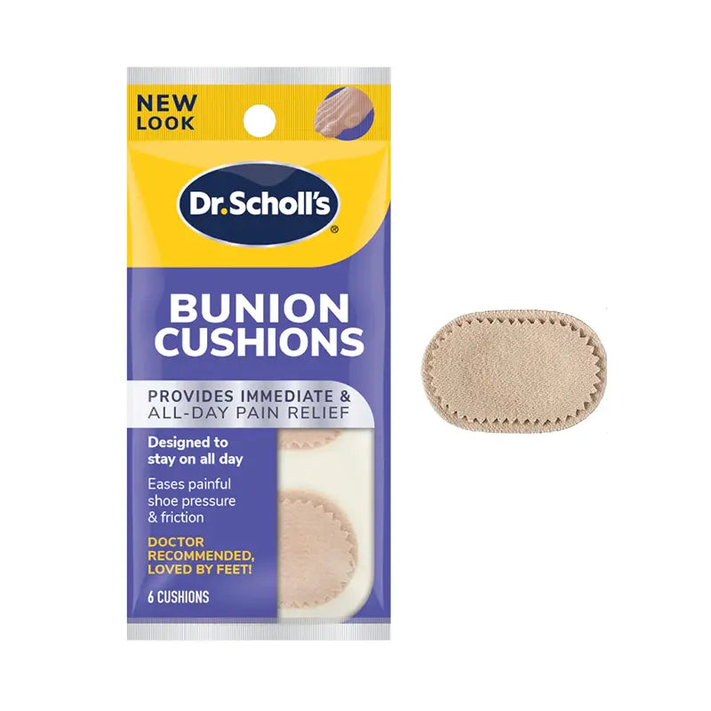 Dr. Scholl’s Bunion Cushions provide immediate, all-day relief from painful shoe pressure and friction, featuring thin, flexible hydrogel or felt technology. Designed for comfort and discretion, these waterproof, adhesive pads prevent blisters, reduce skin rubbing, and are suitable for daily wear.