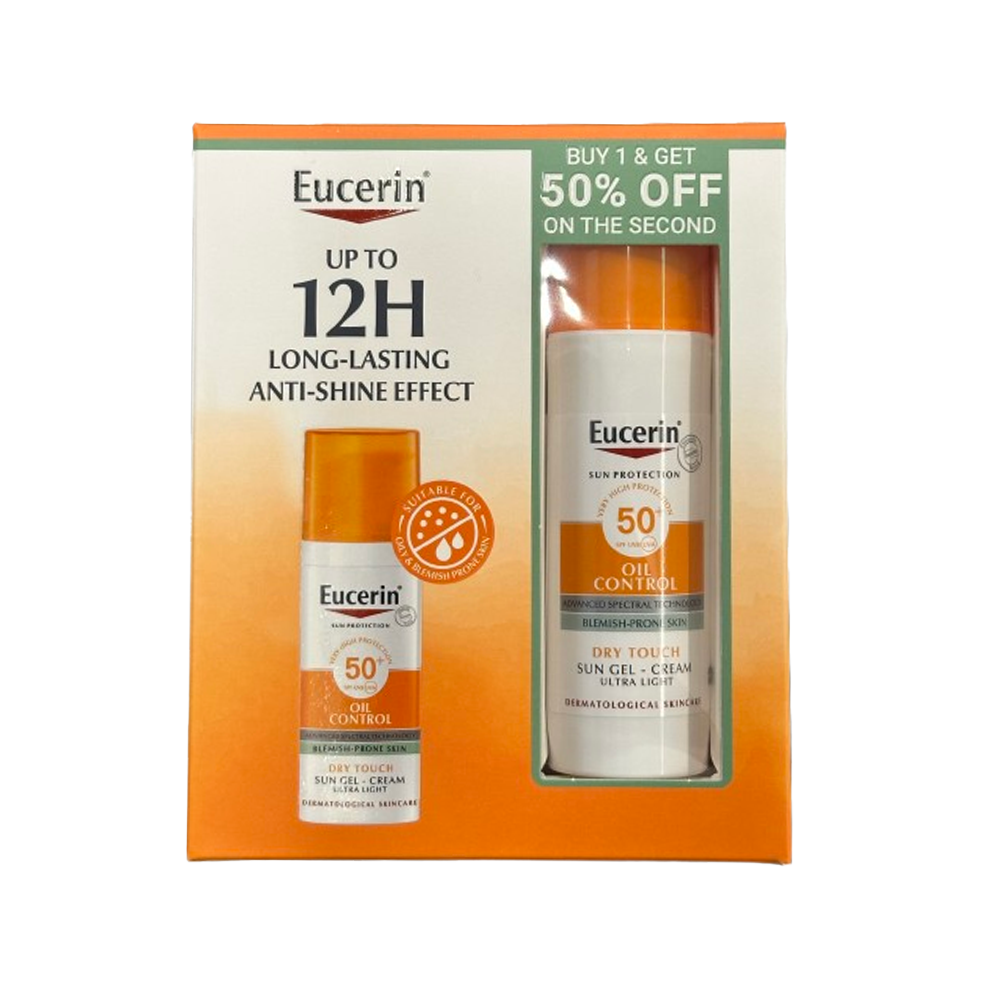 Eucerin Face DUO Oil Control Gel-Cream SPF 50+ is a high-protection daily sunscreen designed for oily and blemish-prone skin. With Advanced Spectral Technology, it shields against UVA/UVB rays and HEVIS light. Licochalcone A fights free radicals, while Glycyrrhetinic Acid supports DNA repair. The formula also includes L-Carnitine for oil control, delivering a long-lasting matte finish. Lightweight, unscented, and non-comedogenic, it absorbs quickly and works perfectly under makeup. Clinically proven for efficacy and tolerability on sensitive and acne-prone skin.